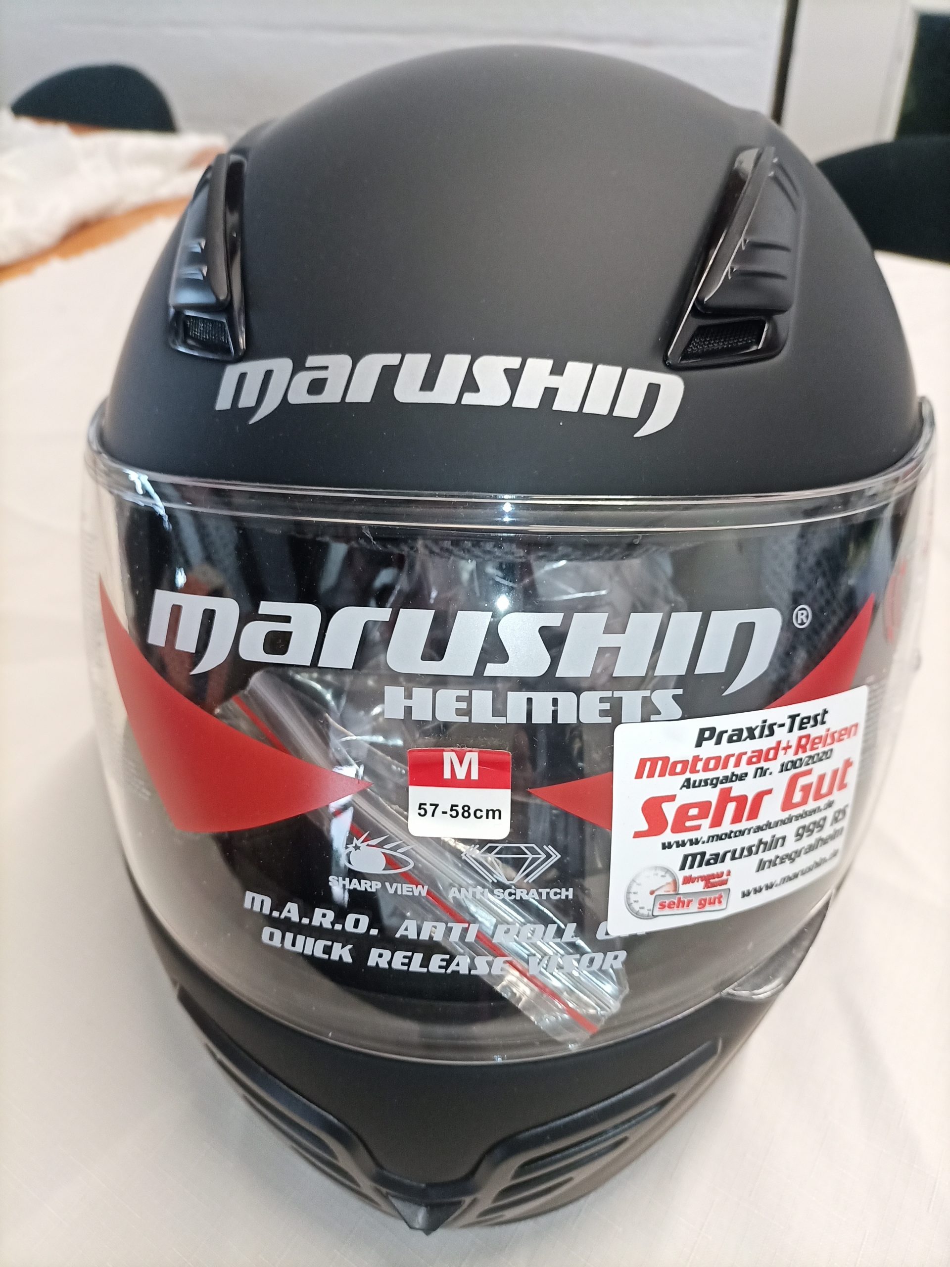 Seit Jahren ist der 999 RS das beliebteste Modell im Marushin Sortiment und konnte bereits unzählige Preise und Auszeichnungen der nationalen sowie internationalen Fachpresse gewinnen. Marushin führt diese Tradition mit dem völlig neu entwickelten 999 RS Comfort fort. Die integrierte Sonnenblende, ein Visier mit neuartigem Schnellwechselmechanismus und Pinlock®-Vorbereitung, die Temperatur und Feuchtigkeit regulierende Innenausstattung oder der Marushin Ratschenverschluss sind nur einige Neuerungen, die dazu beitragen, dass auch der 999 RS Comfort ein Multitalent in Sachen Komfort, Sicherheit und Funktionalität ist.