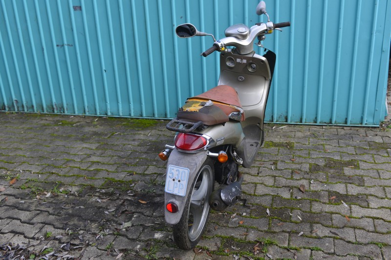 Der 50 cm³ Großradroller von Yamaha steht schon seit 10 Jahren hier. Farbe Anthrazit.